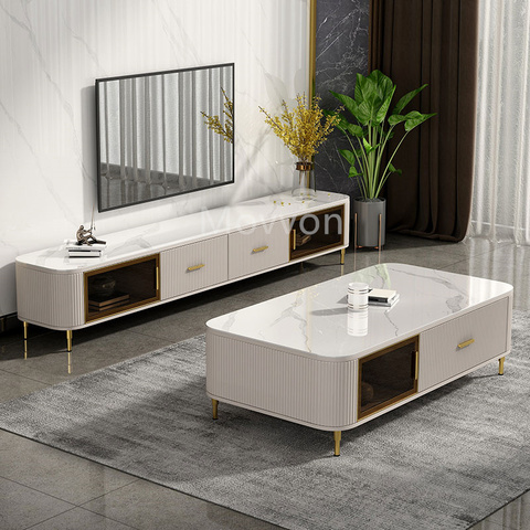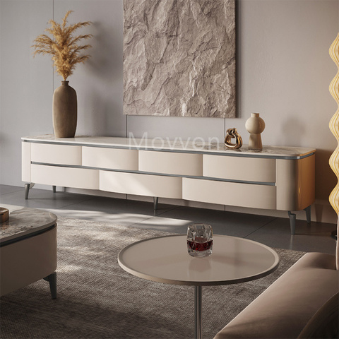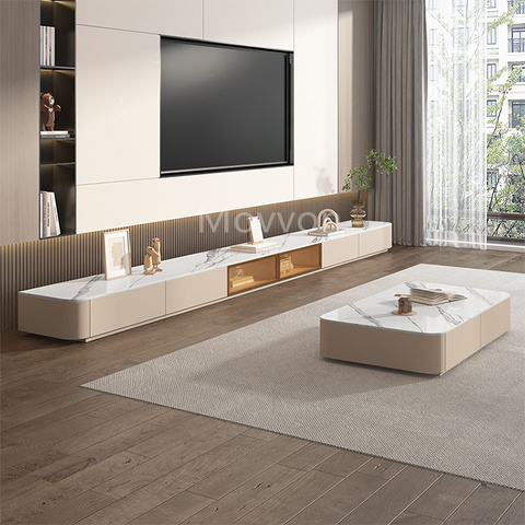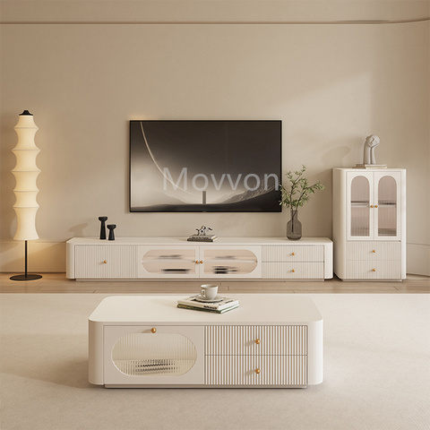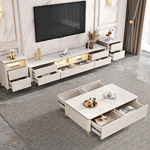 モダンミニマリストオールインワンコーヒーテーブルTVキャビネット無垢材フレンチクリームウィンドデザイン大型スレート家具