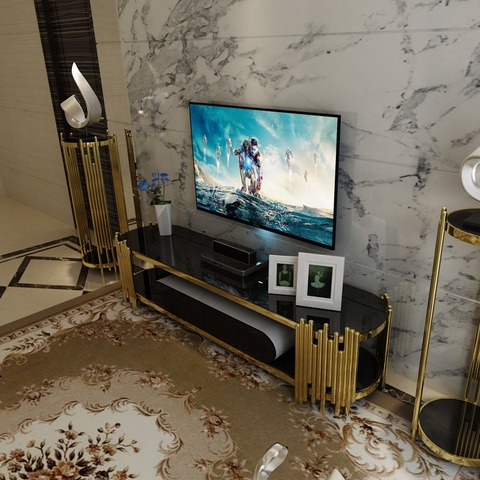 収納キャビネットステンレス鋼ゴールデンフレームホーム家具テレビスタンドモダン
