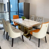 椅子6脚付きダイニング家具ダイニングテーブルステンレススチールゴールドレッグ大理石カウンタートップダイニングテーブル