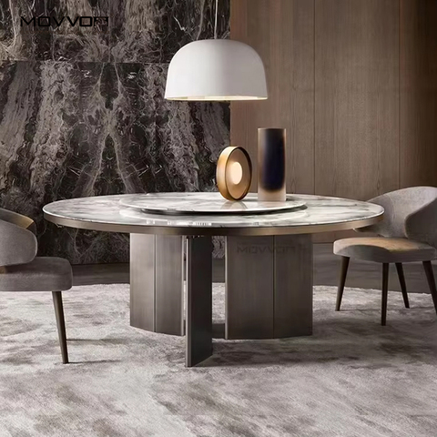 Moderno in marmo rotondo curvo superiore tavolo da pranzo Set convertibile con Base in acciaio inox per casa agriturismo Hotel o Villa