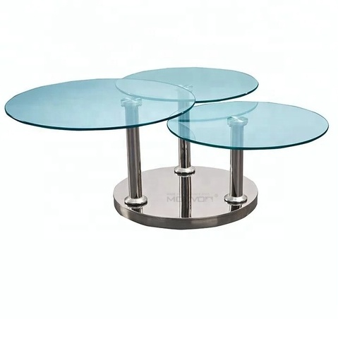Круглый вращающийся кофейный столик из закаленного стекла с основанием из нержавеющей стали, 12 мм, 3 в 1